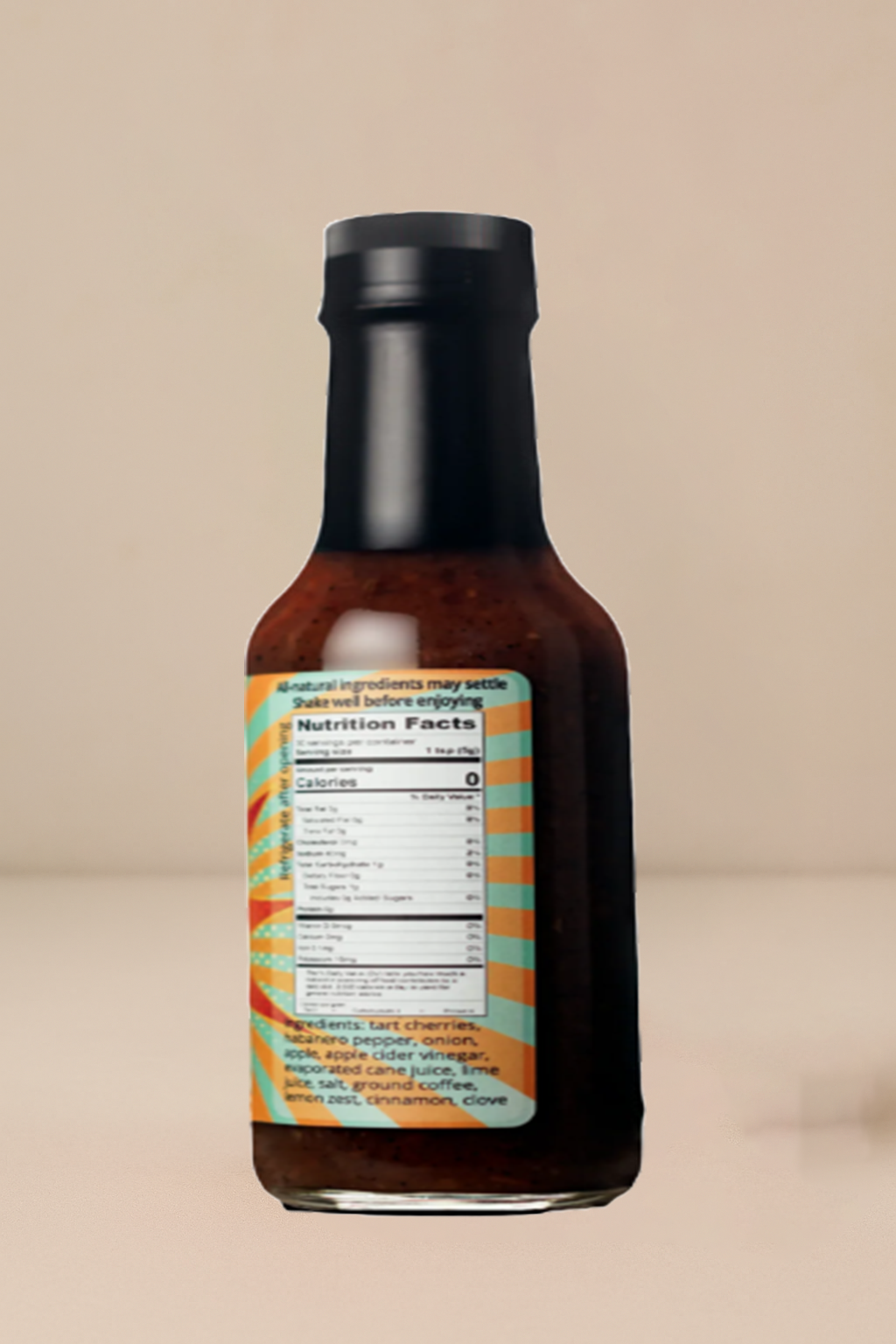 Crafted With: Tart cherries, habanero pepper, onion, apple, apple cider vinegar, evaporated cane juice, lime juice, ground coffee, lemon zest, cinnamon, clove.
