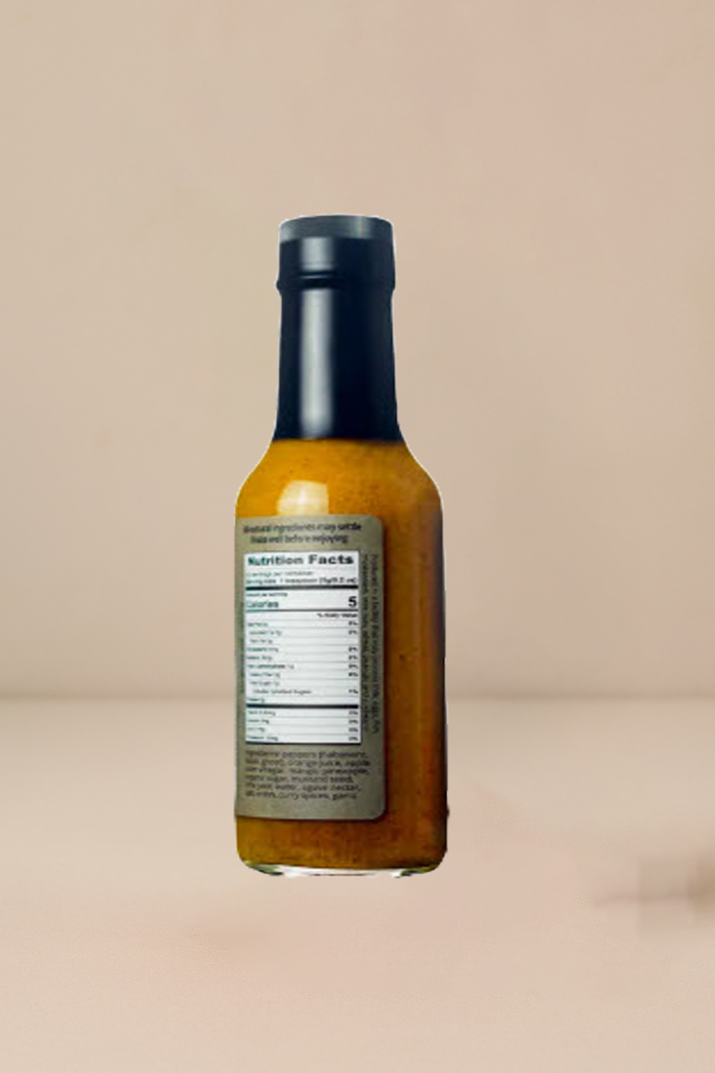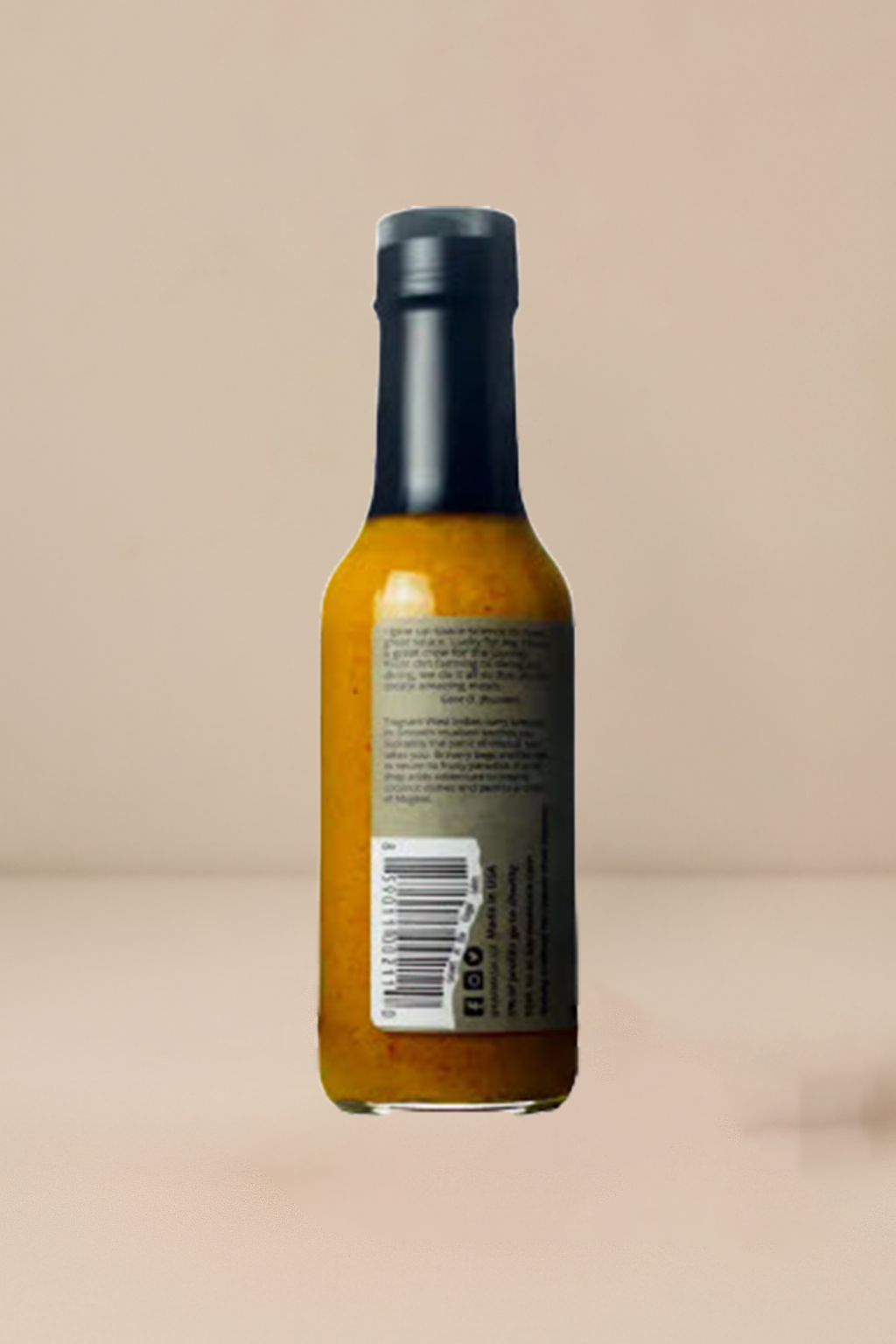Crafted With: Peppers (habanero, fatalii, ghost), orange juice, apple cider vinegar, mango, pineapple, organic sugar, mustard seed, lime juice, water, agave nectar, salt, onion, curry spices, garlic